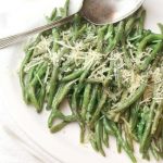 Next, add green beans to skillet and cook for five minutes or until cooked through.